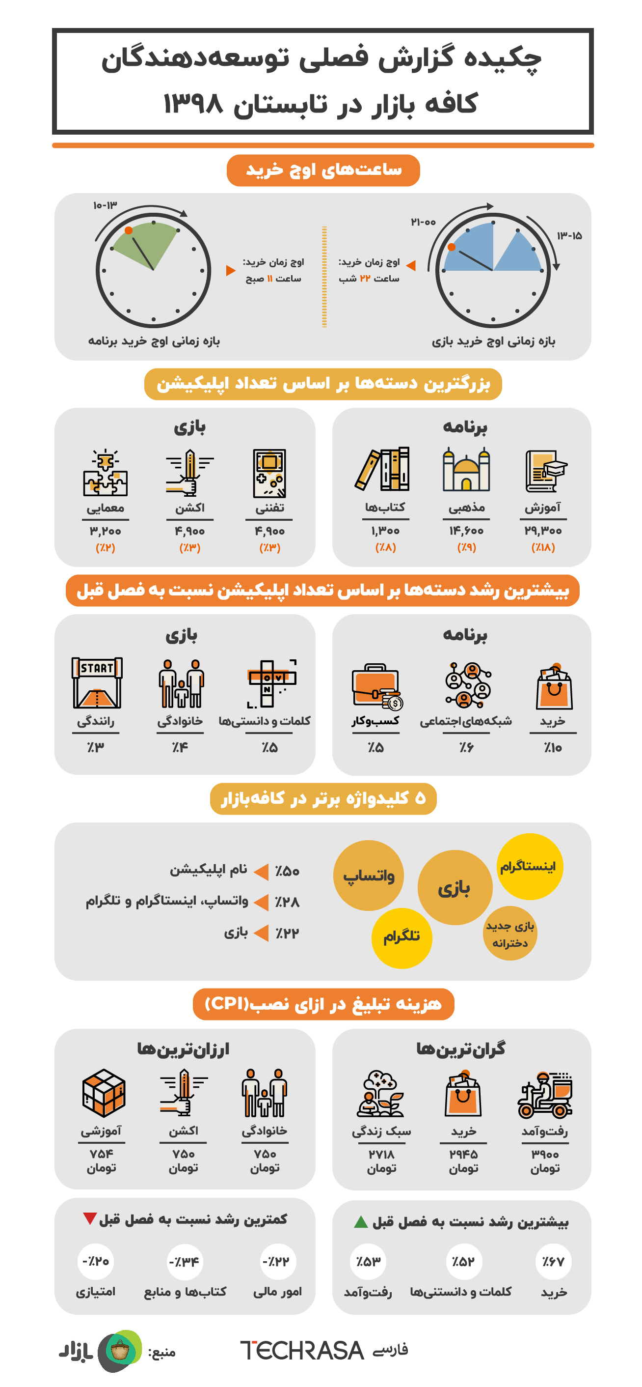 چکیده گزارش فصلی توسعه دهندگان کافه بازار در تابستان ۱۳۹۸