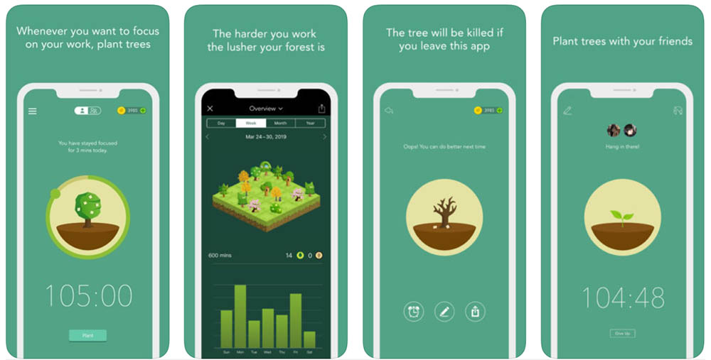 Forest یکی از اپلیکیشن‌های بسیار محبوب و رایگان برای هر دو سیستم‌ عامل آی‌اواس و اندروید است. این برنامه به شما کمک می‌کند تا بر روی کار یا پروژه خود تمرکز کنید. در این اپلیکیشن کافی است بازه زمانی را که می‌خواهید بر روی پروژه خود کار کنید، مشخص کرده و در این مدت زمان باید گوشی موبایل خود را کنار ‌بگذارید. اگر بتوانید به این زمان‌بندی پای‌بند بوده و از اپلیکیشن خارج نشوید، درختی شروع به رشد می‌کند و در انتها با جنگلی مجازی پر از درخت روبه‌رو خواهید شد. موسیقی‌های مختلفی نیز وجود دارند که در حین انجام کار می‌توانید به آن‌ها گوش دهید. این ایده خلاقانه که به صورت بازی طراحی شده است، شما را ترغیب می‌کند تا عملکرد خود را بررسی کرده و بر روی کارتان متمرکز باشید.