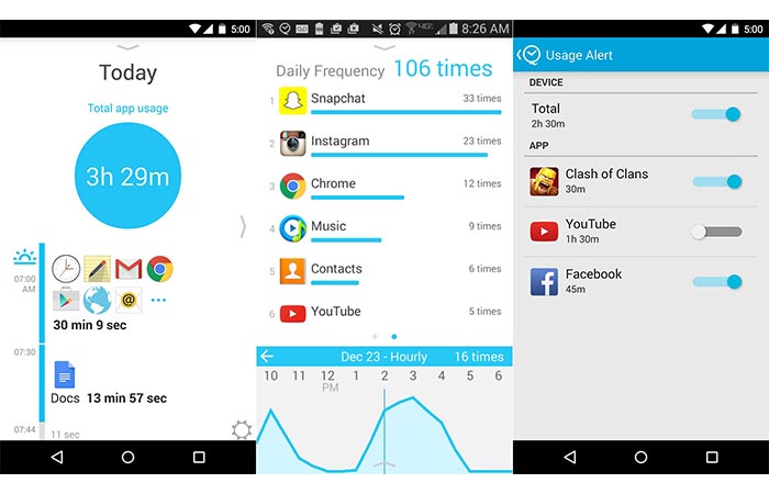 • مانیتور کردن میزان استفاده روزانه، هفتگی و ماهانه از تک تک اپلیکیشن‌ها و تعداد دفعات اجرای آن‌ها